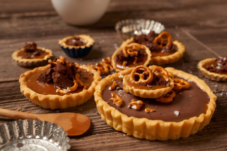 Sea salt cacao nibs salted caramel tartelettes