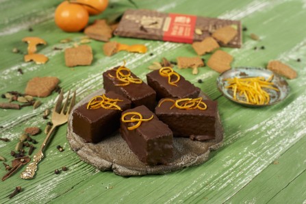 Roughly chop 2 bars of Lovechock Winter Spice Mandarin and slowly melt over a bain-marie. Dip the cake bars into the liquid chocolate. Decorate with the candied orange peel and leave to cool.
